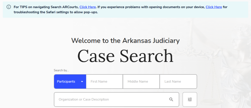 Searching for court cases in Arkansas is straightforward when using the official Arkansas Court Case Search tool: