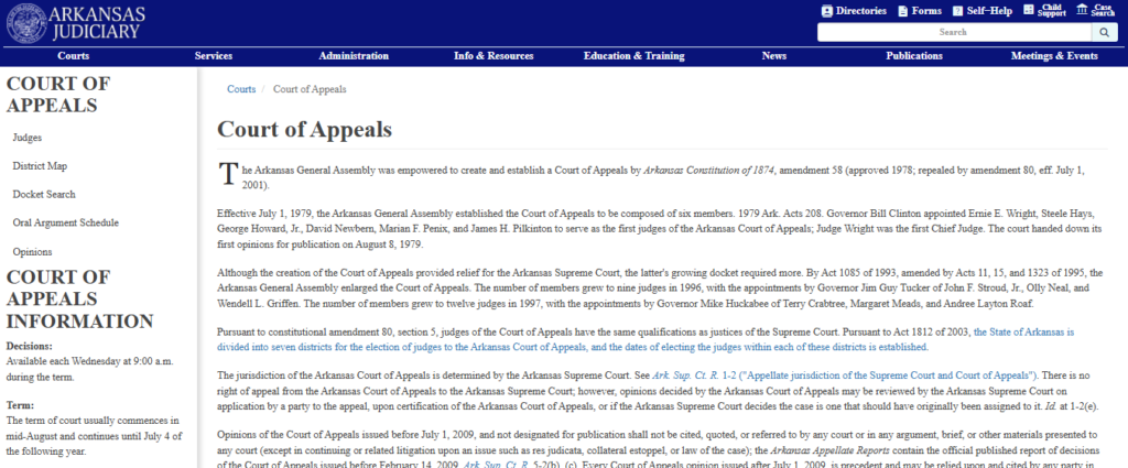 The Arkansas appeals court reviews decisions made by lower courts when a party challenges the outcome. Arkansas appellate court cases mainly come from circuit courts and involve legal errors or disputed rulings.