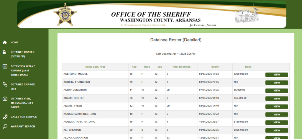 The Washington County Jail roster, Arkansas inmates lookup system, provides quick answers for people searching for custody details, recent arrests, and booking records.